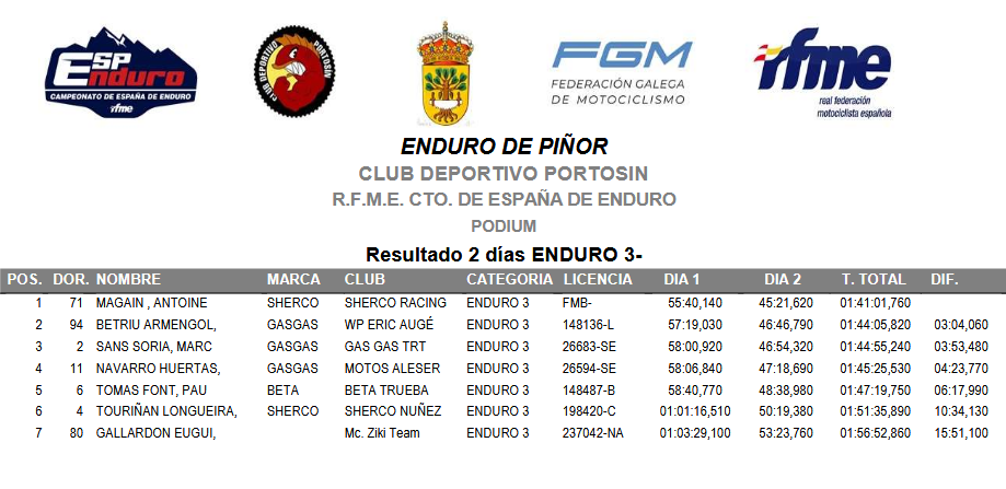 Notre pilote belge Antoine Magain était au départ au guidon de sa Sherco 250 2-tps en E1. Une particularité du championnat espagnol veut en effet que les 250 2-temps soient classées dans la catégorie E1, où Magain se retrouve face aux 250 4-temps, dont celle du champion du monde en titre Josep Garcia.