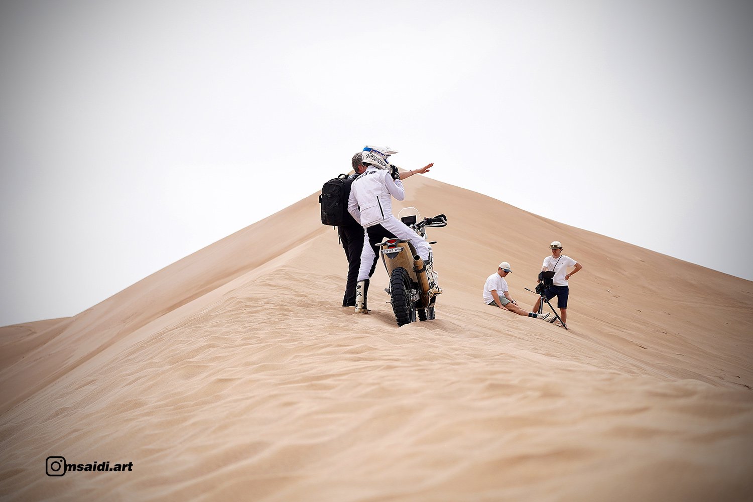 Car Edouard-Charles a eu une excellente idée : me mettre une moto à disposition pour tous les déplacements sur les lieux de shooting. Une opportunité rare… et une grande première pour moi, notamment sur un terrain que je ne connaissais pas : le sable.